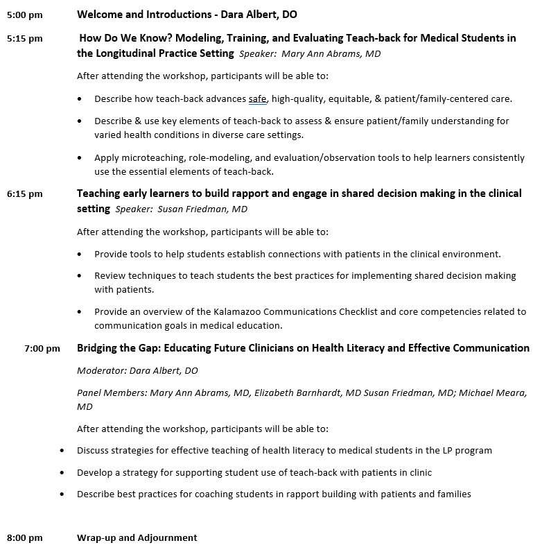7. Discuss strategies for effective teaching of health literacy to medical students in the LP program.