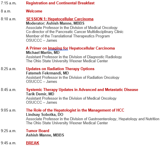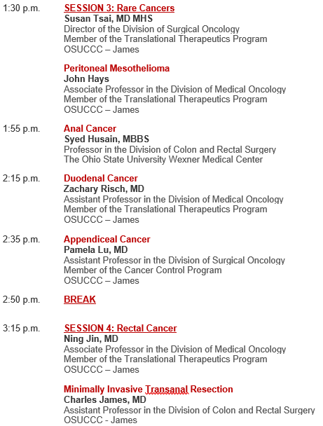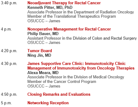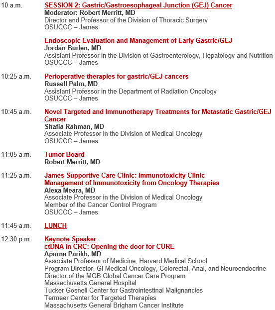With the abundance of new practice-changing data, it is challenging for OSU and community oncology physicians and allied healthcare providers to stay up to date in the management of GI oncology patients and to implement these changes in clinical practice to improve patient care. Treatment options and clinical guidelines are modified year-round at specialty conferences and by national committees. This GI Oncology Symposium will provide a forum to summarize the key takeaways from other conferences and ensure physicians and providers are equipped to provide optimal care for their patients.