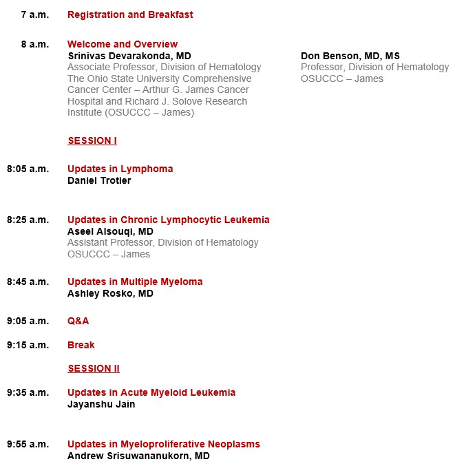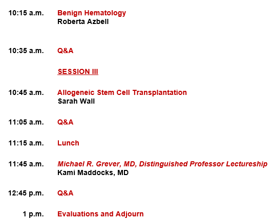 Physicians and health care providers within OSU and the community find it difficult to keep abreast of all the latest developments in the field of hematology. This lack of knowledge could lead to omission of the most recent treatments and practice guidelines from their patient care. Treatment guidelines are periodically modified and updated year-round based on research developments, making it difficult for physicians and other oncology providers to provide optimal care without intervention such as our ASH Review conference.