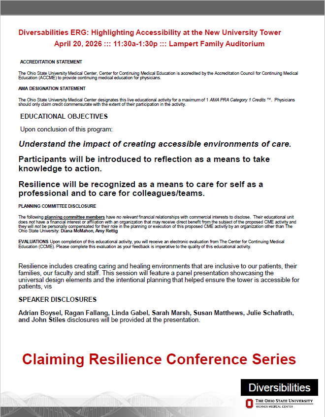 Resilience includes creating caring and healing environments that are inclusive to our patients, their families, our faculty and staff. This session will feature a panel presentation showcasing the universal design elements and the intentional planning that helped ensure the tower is accessible for patients, visitors, and staff.